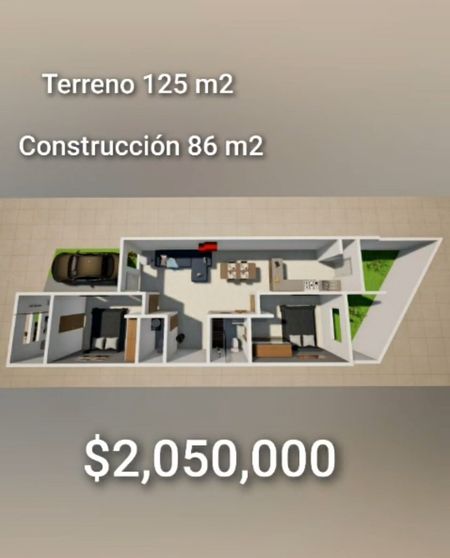 Casa 1 planta, cuenta con 2 habitaciones, 2 baños completos, closets de piso a techo, amplia sala-comedor, cocina con barra de granito. Jardín, estacionamiento para 1 auto.