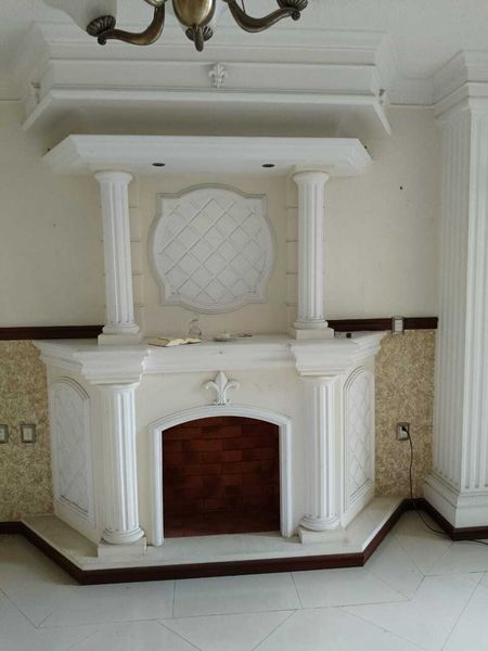 Amplia sala con chimenea decorativa perfecta para tardes acogedoras