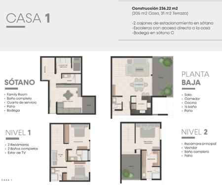 Coto exclusivo con 6 Town houses con diferentes distribuciones, 3 recámaras, 3 baños completos, 2 cajones de estacionamiento en sótano, bodegas, espacios amplios e iluminados, portón de ingreso, interphone y una plazoleta peatonal.