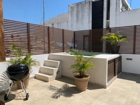 This stunning apartment features your own jacuzzi, a rooftop terrace, a fully equipped kitchen, and a cozy living room. It has 3 bedrooms and 3 bathrooms.