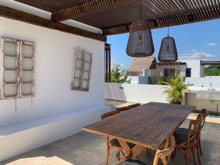 Are you looking for a spacious and luxurious apartment in Tulum, one of the most beautiful and vibrant destinations in Mexico? If so, you will love this 3 bedroom penthouse in Aldea Zama, a prestigious and exclusive community that offers security, comfort, and convenience.