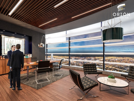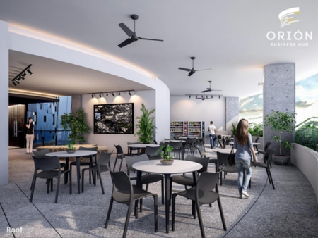 Oficina en renta en edificio Orion Business Hub en Montebello, 40 m2 ubicada en el piso diez. Incluye un cajón de estacionamiento.