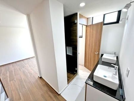 Estrena la casa de tus sueños con esta increíble propiedad cuenta con cochera para dos autos, sala con repisas, baño de visitas, amplio comedor y terraza, elegante cocina con estufa de seis quemadores campana, barra de granito, suelo de mármol, Habitación principal, closet, vestidor y baño habitaciones secundarias ambas cuentan con Closets y baño completo toda la casa con acabados de lujo ROOF TOP- tercer nivel cuenta con áreas de servicio lavadora y secadora techado, tanque de gas estacionario y tinaco de 1,100 Litros, Sala de tv con baño completo y un enorme balcón con vista a la naturaleza vive en esta increíble casa de sueños!!