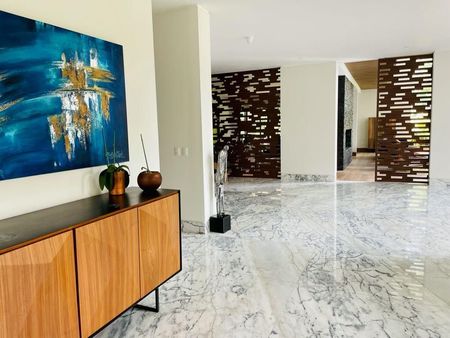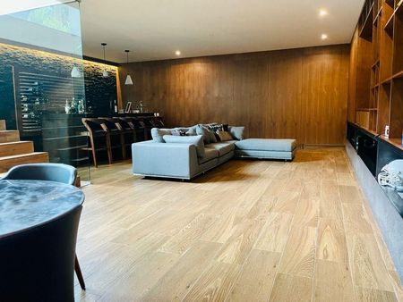 Espectacular casa, hall, estudio, sala con doble altura, comedor, cocina integral, despensa amplia, en P.A.: Cuatro recamaras amplias, tres con walk in closet y la principal con vestidor, todas con baño, en P-1: Sala de T.V., gimnasio, jardín amplio, terraza, la casa cuenta con elevador, calefacción hidronica, garaje 8 autos techados.