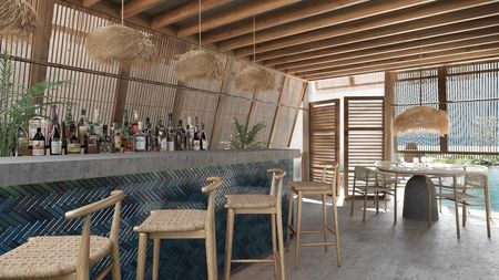 - Acabados naturales de lujo (parota, concreto aparente, concreto pulido, muebles de abedul)