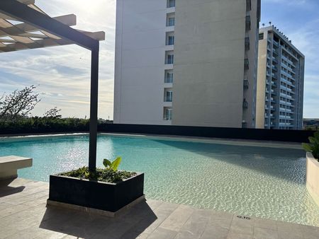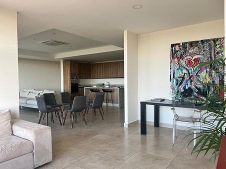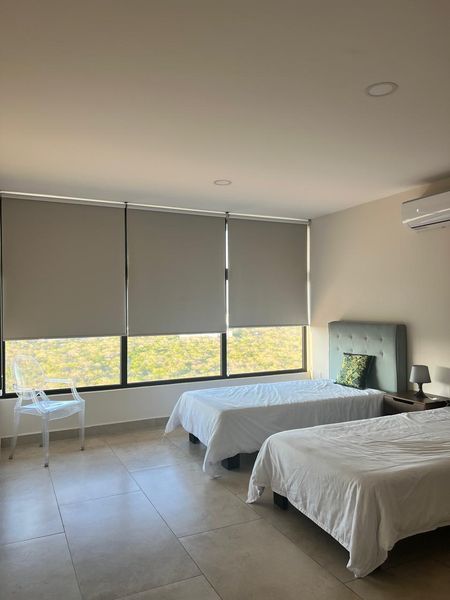 El departamento cuenta con cocina vestida, sala y comedor, terraza con espacio amplio, con dos recamaras , la principal con terraza y closet vestidor, y un área de family room que se puede cerrar a 3a recamara, cuarto de servicio con baño, área de lavadora y secadora