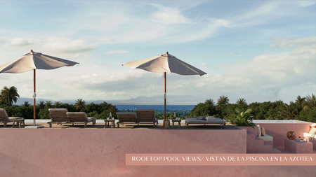 - Piscina infinita en la azotea de 17 metros, área de fogatas, zona de comedor y sala de estar con barbacoa