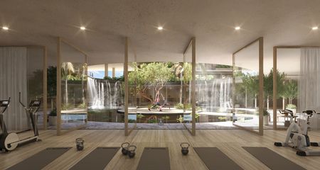 Zonna Branded Residences is an exclusive real estate development in Playa del Carmen, offering 172 apartments and 15 luxury villas for sale. The project features an impressive range of amenities, including a spa, swimming pool, jacuzzi, sunbathing area, rooftop, solarium, fire pit, relaxation area, beach club, kids club, multipurpose area, business center, beauty salon, barber shop, gym, game room, bowling alley, sports bar, gamer room, speakeasy, cinema room, cook center, juice bar, stretch-multi area, lounge bar, controlled access, 24/7 security, and covered parking, ensuring a luxurious and comfortable lifestyle in one of the most sought-after destinations in the Mexican Caribbean.