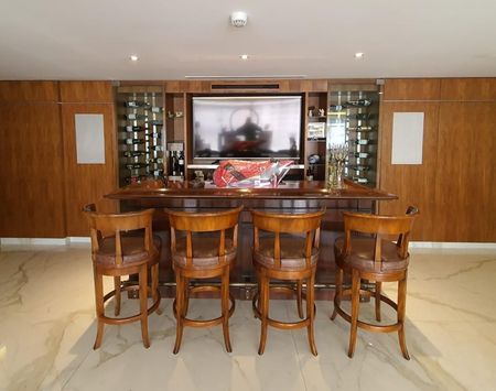 En la planta baja hay un elegante recibidor junto a un bar, medio baño de excelente gusto, y una amplia estancia con una increíble distribución de la sala,