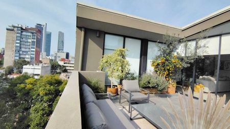Penthouse en edificio boutique de 7 niveles con una ubicación privilegiada frente al icónico Parque España: cafés, galerías, gastronomía internacional y la mejor vida caminable de CDMX… ¡todo a tu puerta!
