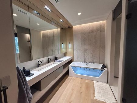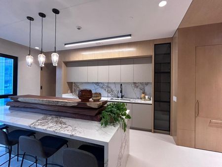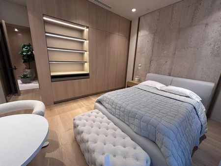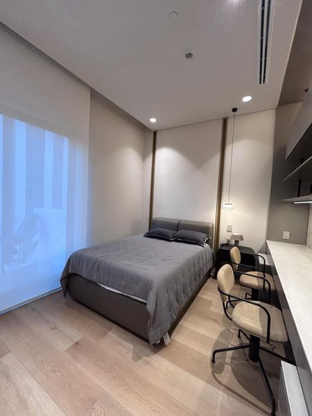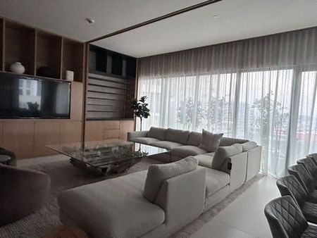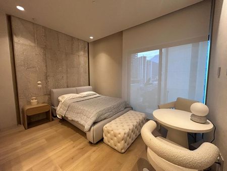 DETALLES EXQUISITOS: El penthouse está revestido en una sinfonía de materiales de lujo, desde la celosía y puerta de herrería con cristal acanalado pintado en negro profundo hasta la madera parota en la cocina, combinada con el cuarzo blanco. Cada detalle ha sido cuidadosamente seleccionado para crear un ambiente sofisticado y armonioso. Las maderas nobles, mármoles selectos (Santo Tomás, Vía Láctea, Crema Lisboa, Negro Absoluto), el porcelanato Botev, la piedra Galarza y la piedra de río cuidadosamente colocadas, crean una atmósfera única y excepcional. Los acabados en tryplay de pino enchapado en encino blanco en áreas clave, las puertas de madera sólida enchapadas en encino blanco con fibra termo acústica, y el piso de duela SPC Boden en las recámaras, completan esta experiencia de lujo inigualable. El sistema de iluminación y persianas inteligentes asegura un control preciso de la luz y la privacidad. Seis unidades de aire acondicionado garantizan el confort óptimo en todo momento.