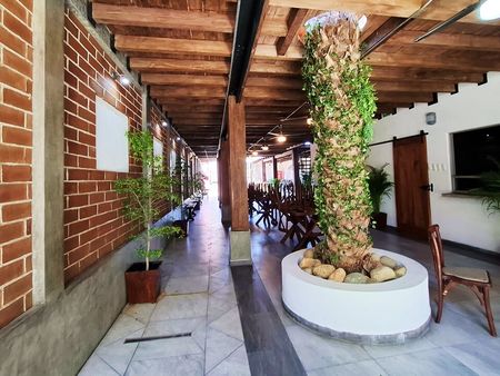 Lista para operar, incluye gas estacionario, estufa comercial, mobiliario de restaurante en madera, asador exterior, jardineras y barda con reja para mayor privacidad. Cuenta con plomería conectada al sistema de agua de la ciudad, tanque séptico, contrato activo con CFE, escaleras hasta el tercer piso y entrada exterior con portón manual.
