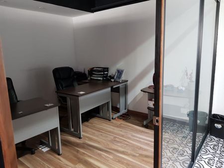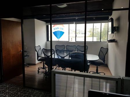 Recepción, área abierta, sala de juntas, 1 baño, cocineta, 3 cubículos. 1 estacionamiento.