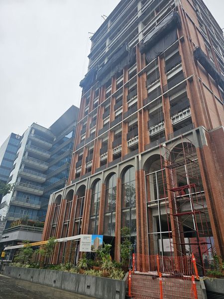 El condominio consta de 80 departamentos con amenidades y los primeros dos niveles comerciales, el ingreso vehicular al estacionamiento es compartido con el área habitacional que dirige al piso del sótano exclusivo con 50 cajones.