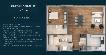 Propiedad de 186m2 de los cuales habitables son 155m2 distribuidos en .Dos Recámaras