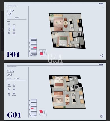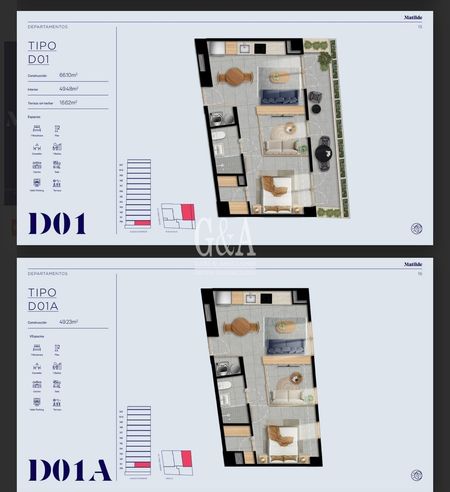 En las fotos vienen cada uno de los departamentos, con sus diferentes medidas, ubicaciones y precios,