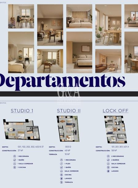 ESTUDIO 1, es un departamento con su recamara, cociNA, SALA Y COMEDOR y 1 baño. 37m2 DE SUPERFICIE