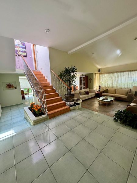 Una bella casa de ambientes amplios y fluidos. La casa cuenta con un Portal muy agradable que cobija tu recepción de los días cálidas de los días cálidos de la primavera. Una puerta grande te recibe con gracia y estilo. Su vestíbulo es muy agradable con piso italiano marca Pastorelli, al costado izquierdo se encuentra un despacho amplio con vista al jardín frontal que pudiera funcionar fácilmente como recámara en planta baja ya que al lado se encuentra divino baño de visitas que es amplio y muy cercano se encuentra el baño de servicio y podría remodelarse.