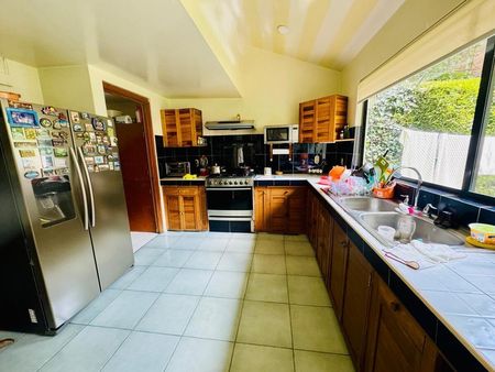 Al costado se encuentra el ante-comedor ambiente. Súper agradable, inspirado para convivir y disfrutar de la familia. Este espacio cuenta con puertas corredizas para salir a una terraza de sobremesa su jardín, además de ser muy grande y bello cuenta con árboles frondosos y es una topografía plana. Su forma abosada genera privacidad y y un ambiente espacioso para disfrutar de la naturaleza al máximo. AsÍ mismo, junto al desayunador se encuentra una cocina de diseño muy funcional con un cierto sabor rústico contemporáneo, diseñada un poco más alta de lo normal, la plancha de trabajo para generar mayor salud ergonómica al trabajar en la cocina su distribución es muy funcional y su diseño es muy bonito. Cuenta con despensa, cuarto de lavado y cuarto de servicio. De forma anexa.