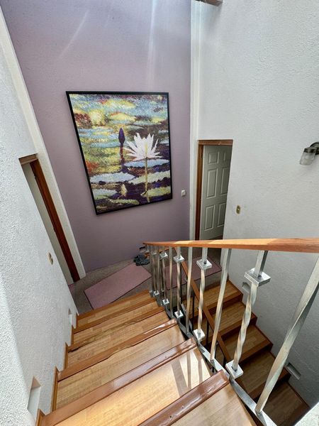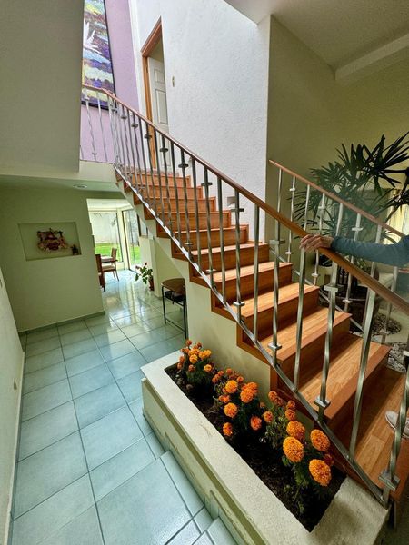 Sí regresamos al vestíbulo principal. Encontraremos una escalera de muy cómodo, trazo que te vestíbula Tanto la recámara principal como una recámara secundaria. La principal es súper agradable y domina plenamente con sus vistas. Su precioso jardín. Cuenta con un vestidor y un baño con cerámica de Dolores Hidalgo. La otra recámara también contempla bellamente. Su jardín posterior tiene espacio para un antecámara clóset de empotrado y su propio baño, manejando consistentemente el mismo estilo de toda la casa