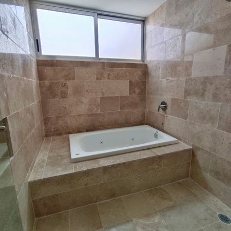 • Recámara principal con walk-in closet e isla, baño con lavabo doble regadera y tina