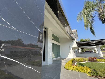 Cuenta con un elegante y práctico porcelanato español de gran formato en piso y paredes, que contrastan perfecto en tonos monocromáticos desde la fachada y toda la planta baja, hasta la escalera principal.
