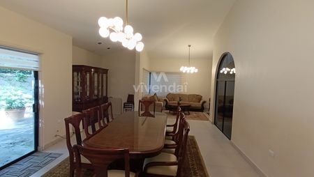 Recibidor medio baño de visitas, sala, comedor, cocina integral con espacio para antecomedor y espaciosa alacena ésta con acceso al jardín, amplia lavandería, cuarto de servicio con baño completo y acceso de servicio. Las áreas familiares, cuentan con una sala de TV y 3 habitaciones, cada una con baño completo de uso propio, closet y la principal con vestidor y salida a patio interior.