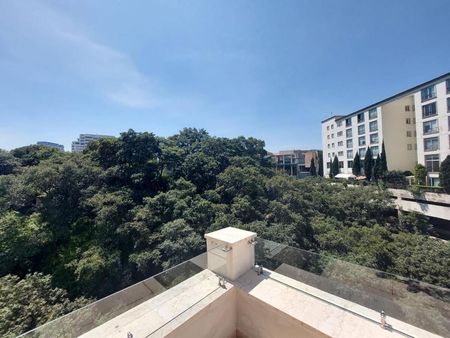 Precioso departamento tipo Garden House Americano, terraza estilo, Carolo, Family Room, sala, comedor, estudio que se puede convertir en cuarta recámara, 4 estacionamientos, 2 Bodegas, una en la parte alta y otra en el sótano.