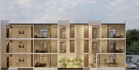 Complejo residencial en el interior de Mérida, con 13 departamentos con un diseño adaptado a la vida cotidiana, funcional y práctica.