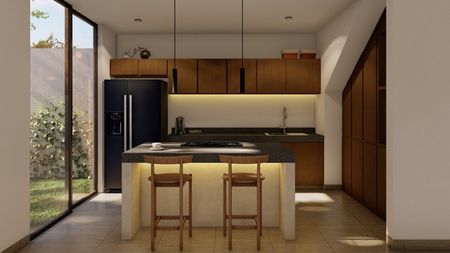 Casa ubicada a 5 minutos de carretera Mérida a Progreso. A 5 minutos del Periférico (entrada por industrias no contaminantes), muy cerca del colegio Montreal.