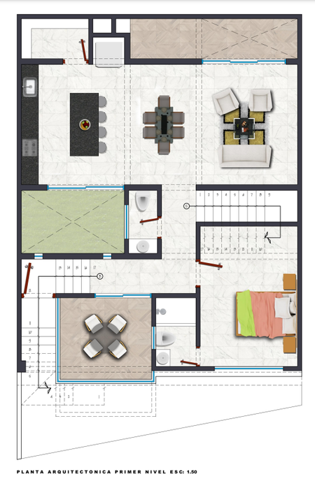 - Recámara principal con terraza, vestidor y baño completo con doble lavabo