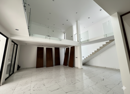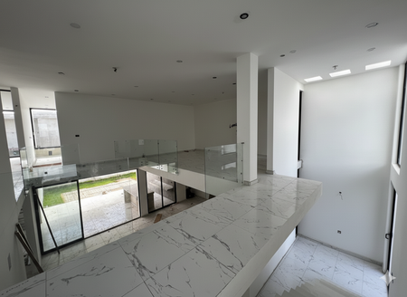 Planta alta: sala de TV, 3 recámaras con balcón, clóset vestidor y baño; master con doble lavabo y áreas separadas. Luces de cortesía en pasillos.