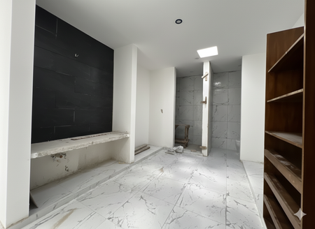 Planta baja: cochera techada para 3 autos, recibidor, sala y comedor a doble altura, cocina equipada con isla y alacena, ½ baño de visitas, ½ baño de piscina, cuarto de servicio con baño, patio de tendido, recámara con clóset vestidor y baño, terraza techada con barra, piscina en chukum con 2 cascadas y patio.