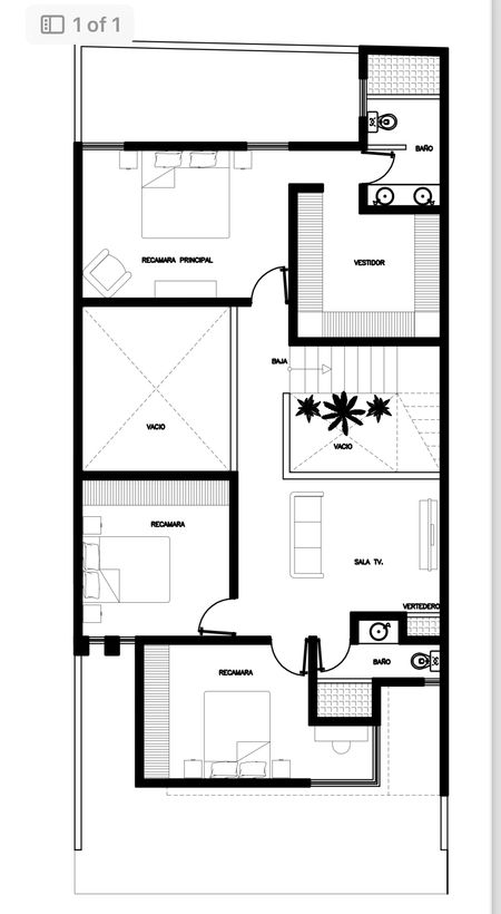 1 Recamara principal cuenta con baño completo y vestidor de gran tamaño .
