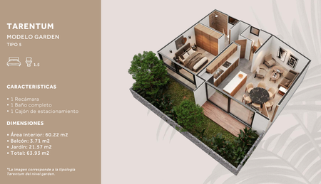 Tarento contara con 42 departamentos distribuidos en 5 modelos diferentes con un estilo eco chic; distribuido en 3 niveles Planta Baja, Nivel 1 y nivel 2 por medio de escaleras.