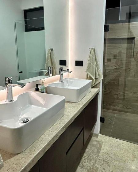 Pisos de mármol travertino, domótica en toda la casa, 4 paneles solares, carpintería de madera MDP hidrófugo, parrilla eléctrica, fijos de cristal templado en baños y planta individual de tratamiento de agua.