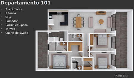 -TRÉS BAÑOS COMPLETOS DOS RECÁMARS CON BAÑO ADENTRO Y UN BAÑO COMPLETO AFUERA.