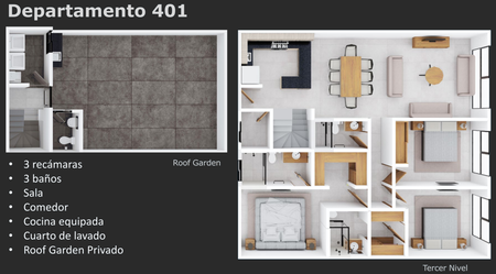 SEIS DEPARTAMENTOS UNOS CON TERRAZA Y BLACÓN, DOS CON ROOF GARDEN PRIVADO Y UN ROOF COMÚN.