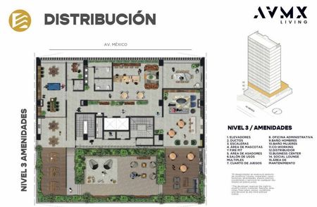 Este exclusivo penthouse de dos plantas, ubicado en la prestigiosa Torre AVMX Living, ofrece un diseño moderno y sofisticado con una distribución que maximiza el espacio y la comodidad.
