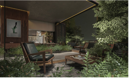 **Nivel 10 incluye: Coffee bar, Studio Kitchen y área de co-working; salón de juegos con amplias terrazas que combinan espacios abiertos y vegetación para crear un jardín de doble altura.