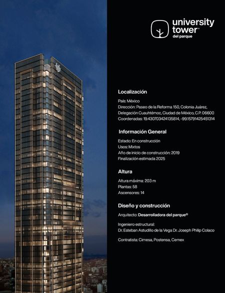 University Tower es un desarrollo ubicado junto a La Casa Gargollo, una de las construcciones más célebres del Paseo de la Reforma de principios del siglo XX. La mayoría de los habitantes de Ciudad de México la conocen como el Club Universitario. El club social y gastronómico la adquirió en 1933. El propietario original, José Manuel María Gargollo y Gara y su esposa, Alicia Rivas-Mercado Castellanos, la cedieron durante las dificultades financieras del comienzo de la Depresión.