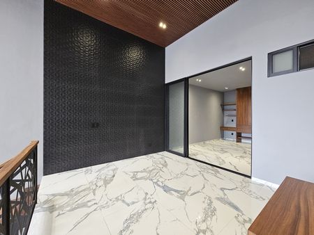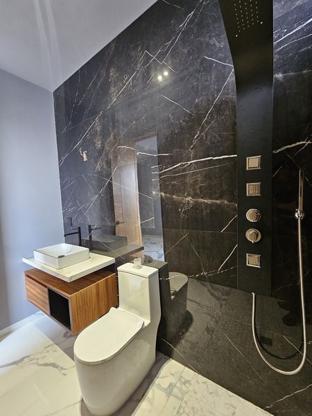 La casa cuenta con doble altura en todas las áreas sociales, cuenta con pisos de 80 x 160, madera de parota en toda la carpinteria de la casa.