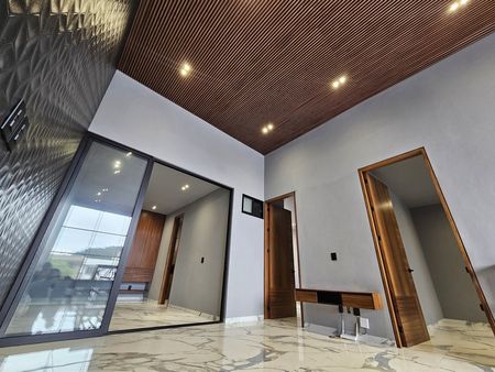 La casa cuenta con doble altura en todas las áreas sociales, cuenta con pisos de 80 x 160, madera de parota en toda la carpinteria de la casa.