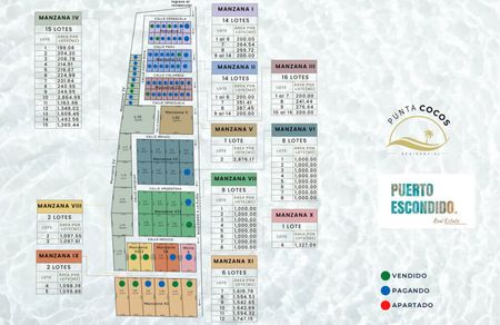 Presentamos 'Punta Cocos': un excepcional desarrollo residencial en Puerto Escondido, Oaxaca. Este terreno privilegiado en venta en Playa Palmarito ofrece una oportunidad única de poseer un pedazo de paraíso. Con 87 amplios lotes distribuidos de manera cuidadosa en 11 bloques, esta propiedad frente al mar ofrece impresionantes vistas al océano. Ya sea que sueñes con construir tu casa ideal o invertir en un negocio lucrativo, 'Punta Cocos' brinda un lienzo ideal para cumplir tus deseos. Abraza la tranquilidad de la vida costera mientras disfrutas de los vibrantes alrededores. ¡No pierdas esta oportunidad!