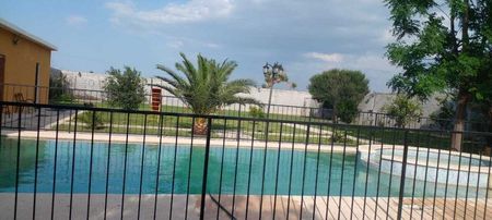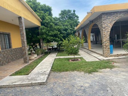 Hermosa quinta construida en el 2017, Terreno bardeado de 2032 m2, Alberca de 50m2 con chapoteadero, Palapa de 270m2, 2 pozos de agua de 50m, Casa doble piso para huéspedes, estacionamiento para 8 vehículos, cancha de futbol con pasto natural. ubicada a 25 min de Escobedo en Salinas Victoria, sector muy tranquilo.