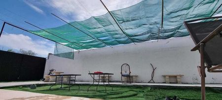 Cuenta con 2 baños, regadera y cuarto de máquinas. Barda y porton. 500m2