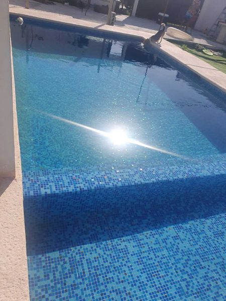 Quinta con alberca de 9x4 mts, cascada, chapoteadero, luces Led, mosaico veneciano.