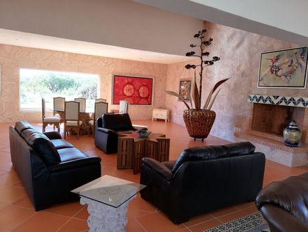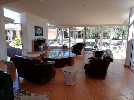 Descripción del área de esparcimiento sobre una superficie de una hectárea, Una bellísima casa, sumamente amplia con 7 recámaras, 11 baños, oficina, gimnasio, cuarto de televisión, jardín interior además, de una hermosa huerta con arboles frutales.