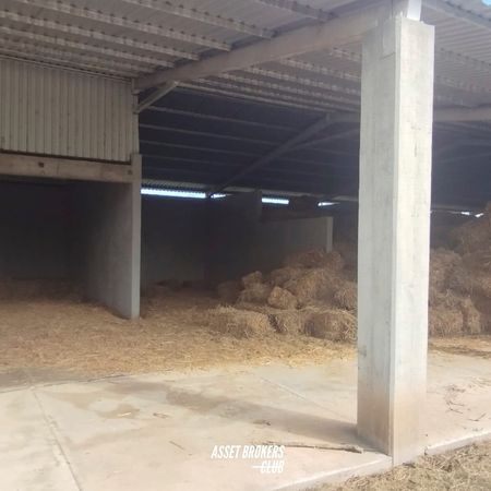Cobertizo para maquinaria, área de trabajo y acopio de granos.