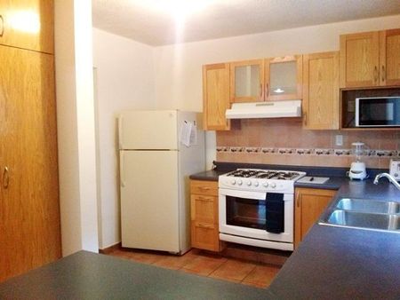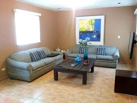 Totalmente amueblado y equipado cuentan con 2 recámaras, un baños completo, sala comedor, cocina integral equipada, medio baño, cochera para un auto, aire acondicionado, lavandería equipada con lavadora, secadora, burro y plancha, loza, blancos, TV.